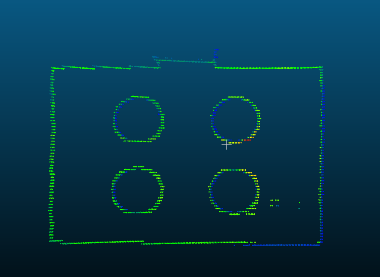这部分其实隐含这一些额外限制。在进行聚类的时候,距离阈值是2cm,也就是说,边界点云不能太过稀疏,否则会导致一个圆孔的边缘点云被分成多个聚类,最终无法正确识别出4个圆孔。