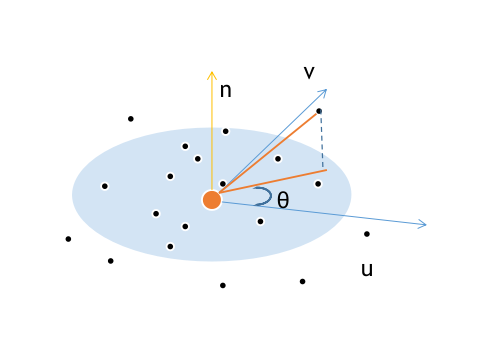- 对于每个点,检索其领域内的点,对这些点到该点的向量,投影到u-v平面上